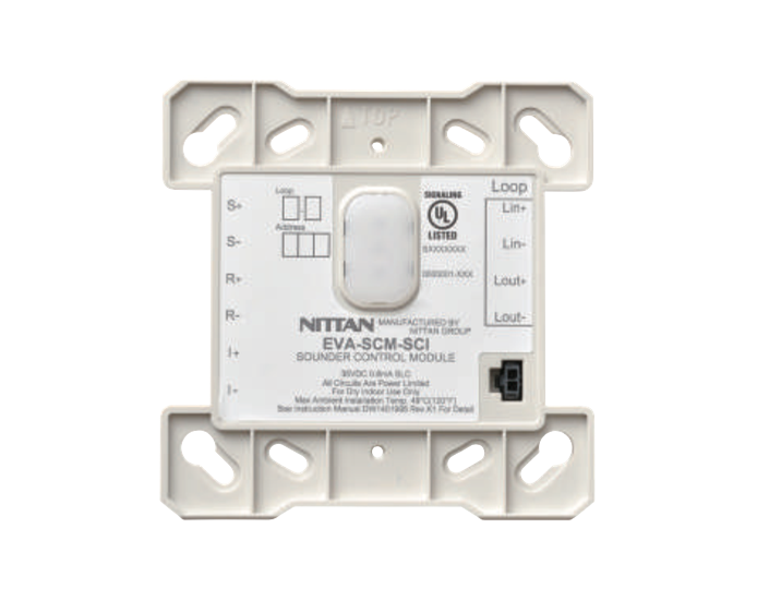 EVA-SCM-SCI Sounder Control Module with Short Circuit Isolator is an output module intended for use in addressable two wire systems, which provides the control of NAC (Noti cation Appliance Circuit) devices. The module is used for Class A (Style Z) and Class B (Style Y) operation.